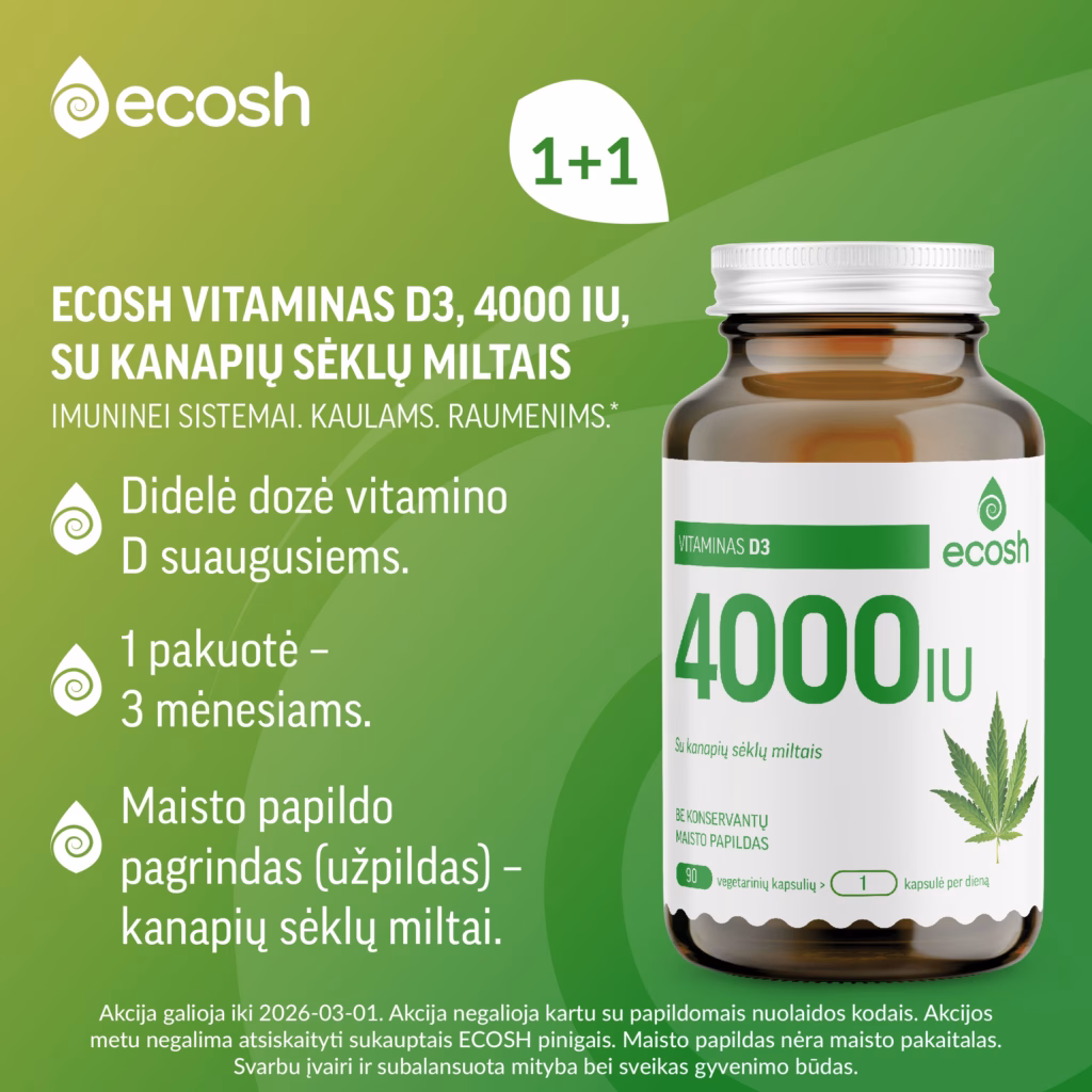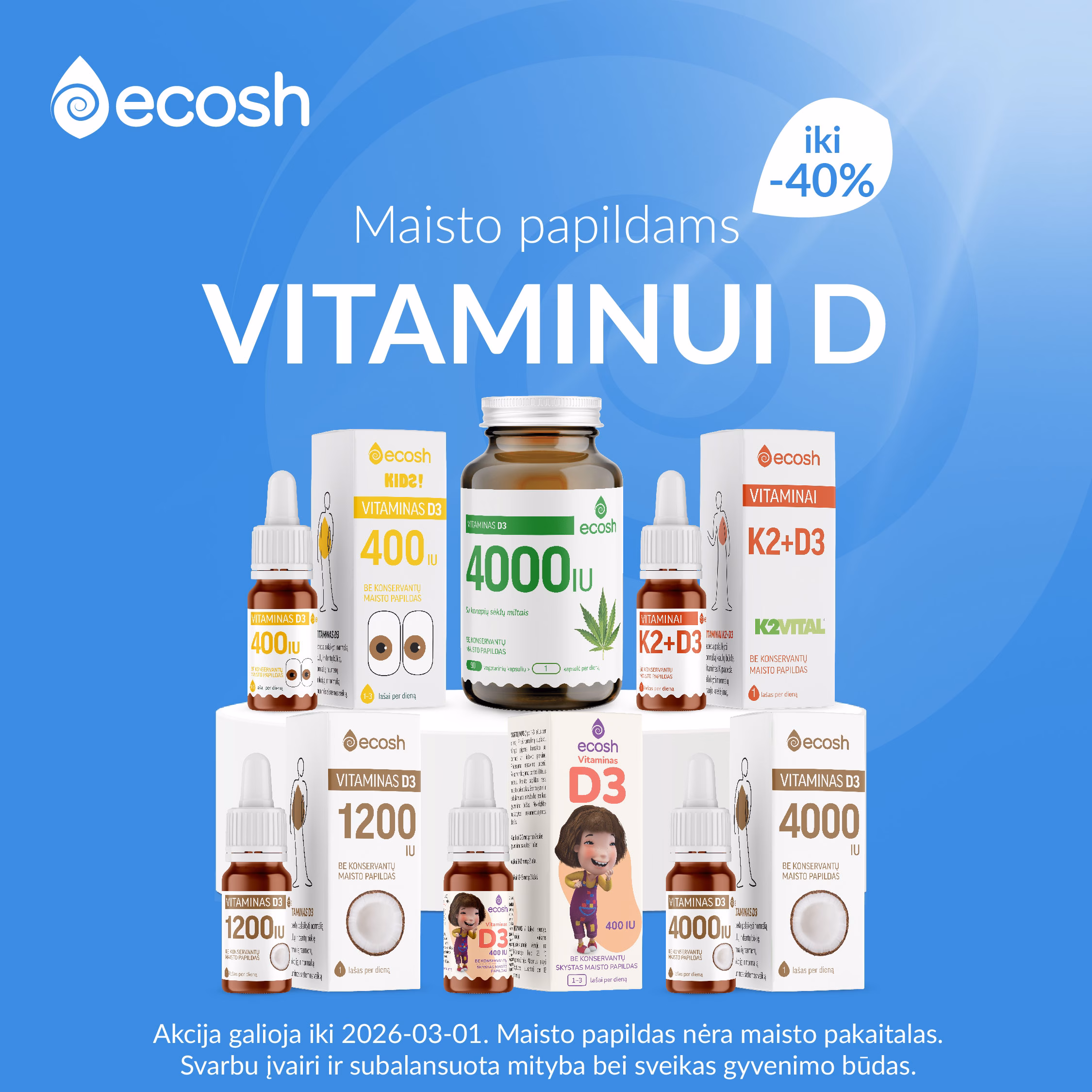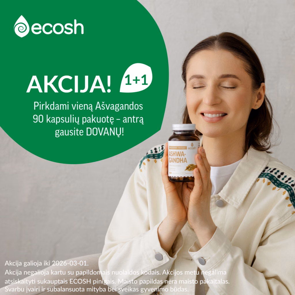 Rinkitės sprendimus, kurie tinka Jūsų kasdienybei.🌿 Imuniteto, širdies ir kraujotakos bei vitamino D papildams taikomos iki -40 % nuolaidos.🎉❄️ 🛒 Užsukite į www.ecosh.lt ir iš plataus asortimento išsirinkite būtent Jums tinkamus maisto papildus. Akcijos 1+1 metu, antra pakuotė į krepšelį įsideda automatiškai. Nuolaidos nesumuojamos. Akcijos metu negalima atsiskaityti sukauptais ECOSH pinigais. ECOSH pasilieka teisę bet kada keisti akcijos sąlygas, dovanų skaičius ribotas. 📌 Akcijos vyksta iki 2026-03-01. Maisto papildas nėra maisto pakaitalas. Svarbu įvairi ir subalansuota mityba bei sveikas gyvenimo būdas. #ecoshlietuva #maistopapildai #akcijos #nuolaidos