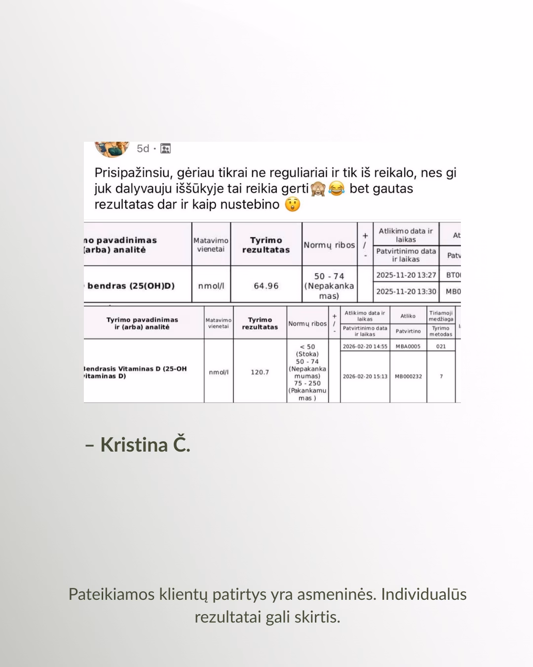 Pasibaigus 60 dienų Vitamino D3 projektui, dalinamės dalyvių rezultatais:*
